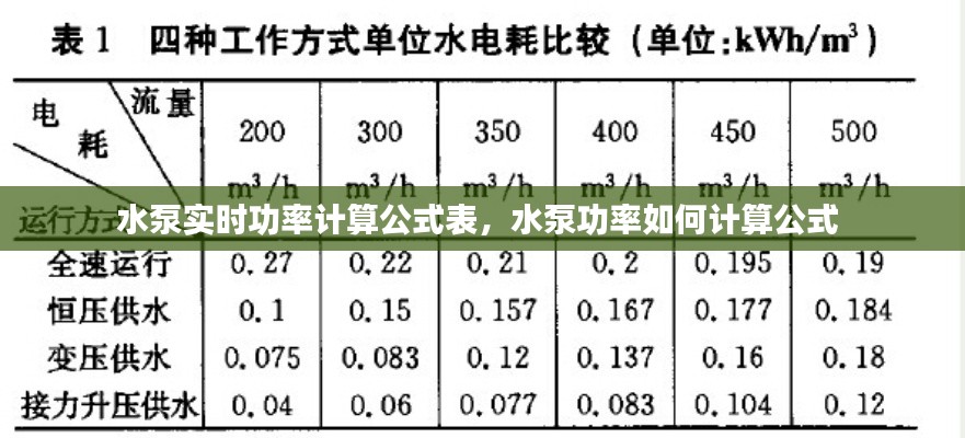 水泵实时功率计算公式表,水泵功率如何计算公式