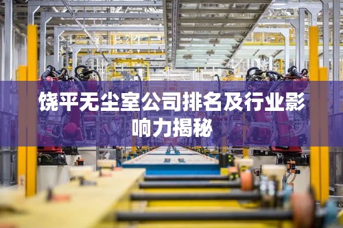 随着科技的不断进步,无尘室技术在许多行业中的应用越来越广泛,饶平地区作为广东省的一个重要城市,其无尘室技术产业也取得了长足的发展,本文将探讨饶平无尘室公司的排名及其在行业中的影响力。