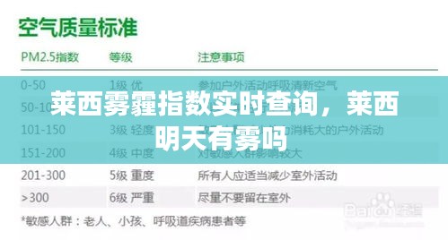 手机应用程序:市面上有多款提供空气质量监测的应用程序,如“空气质量指数”、“雾霾天气”等,用户可以随时查询莱西的雾霾指数。