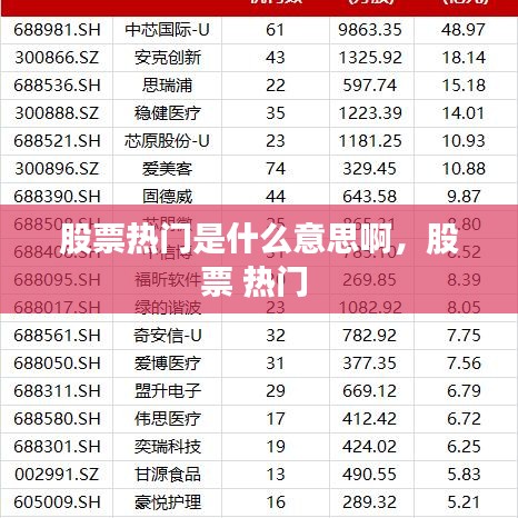 股票热门,顾名思义,是指在股票市场中受到投资者广泛关注和讨论的股票。这些股票通常具有以下几个特点:交易活跃、价格波动较大、市场关注度较高。股票热门的出现往往与市场热点、行业趋势、公司业绩等因素密切相关。