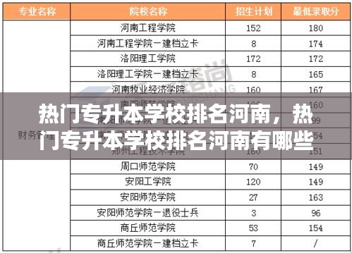 河南省的专升本学校众多,各有特色。以上介绍的这些热门学校在各自领域具有较强的教学和研究实力,为学生提供了良好的学习和发展机会。选择适合自己的学校,努力学习,相信每位学生都能在专升本的道路上取得优异的成绩。
