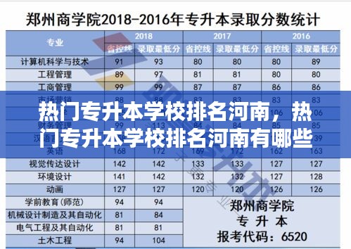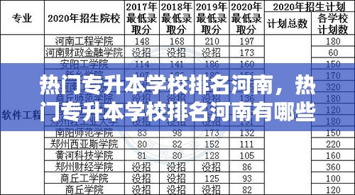 河南省作为我国中部地区的重要省份,拥有众多知名的高等教育机构。随着我国高等教育的不断发展,专升本教育也逐渐受到越来越多学生的关注。本文将为您介绍河南省热门的专升本学校排名,帮助您更好地了解这些学校的办学特色和优势。