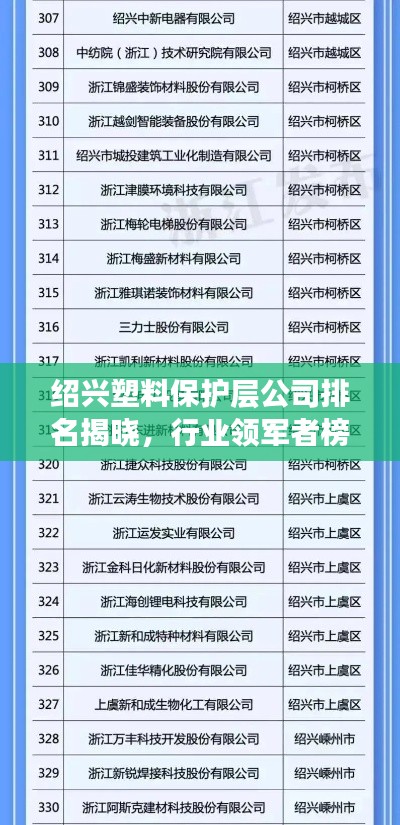 绍兴,一座历史悠久的城市,近年来在塑料保护层行业也崭露头角,随着塑料保护层技术的不断发展和市场需求的大幅增长,绍兴的塑料保护层公司如雨后春笋般涌现,本文将为您详细介绍绍兴塑料保护层公司的排名及相关信息。