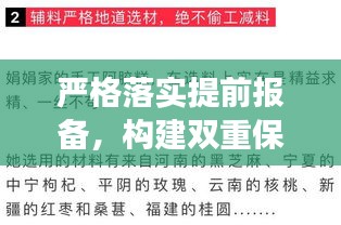 “严格落实提前报备”是我们面对公共安全挑战时的有力武器,我们每一个人都应该认识到提前报备的重要性,积极参与到报备工作中来,政府和相关部门也要加强引导和服务,简化报备流程,建立激励机制,确保报备工作的落实。