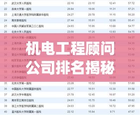 随着科技的飞速发展和工业领域的持续壮大,机电工程顾问公司在推动产业进步中的作用日益凸显,这些公司以其专业的技术知识和丰富的实践经验,为各类机电工程项目提供全方位的咨询和服务,本文将探讨机电工程顾问公司的排名及其在行业中的影响力。
