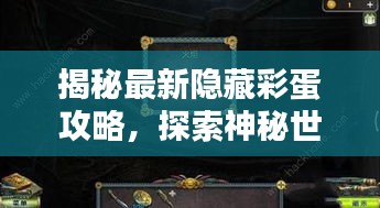 在这个充满神秘与惊喜的世界里,隐藏的彩蛋如同宝藏般等待我们去发现,本文将为你带来最新隐藏彩蛋来袭攻略大全,带你探索神秘世界的宝藏,快来一起寻找那些令人惊喜的彩蛋吧!