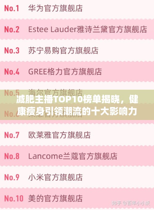 随着健康意识的不断提高,越来越多的人开始关注减肥这一话题,在减肥的道路上,许多人寻找着有效的减肥方法和指导,这时,减肥主播成为了众多减肥者的指路明灯,他们通过直播、视频等形式分享减肥经验、健身知识和健康饮食,为大众提供了全方位的减肥指导,本文将介绍排名前十的减肥主播,他们用自己的努力和专业知识,成为了减肥界的佼佼者。